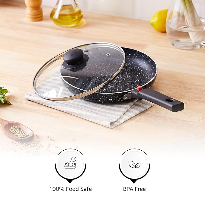- PACKAGE CONTENTS: 22 cm Fry Pan, 1 Glass Lid